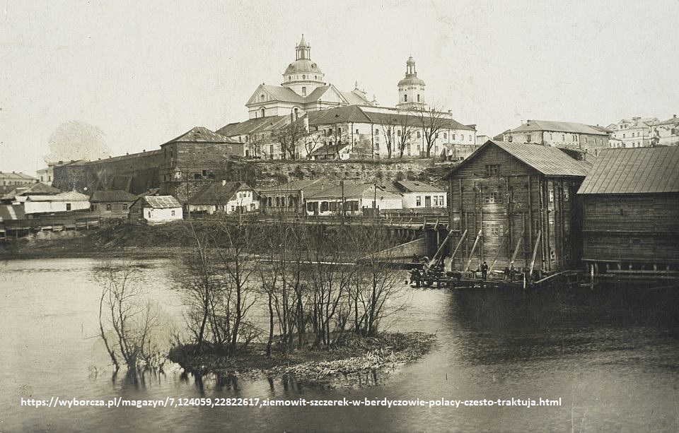 Berdyczów – słynne miasto nie tylko w powiecie żytomierskim ale i w całej Rzeczypospolitej znanym było z całorocznych targów, jarmarków i tego właśnie miejsca gdzie każdy szanujący się kupiec przybywał chętnie i omijać nie chciał. Przez okrągły rok trwały tam dni targowe bez względu na kalendarz liturgiczny, który tyle miał wspólnego z życiem miasta, że towary na straganach się zmieniały. Nie oznacza to, że mieszkańcy byli bezbożnikami. Wręcz przeciwnie, każdy dziękował Bogu za dar mieszkania w Berdyczowie i modły składał o dalszą pomyślność miasta, do którego ściągali wszyscy kupcy, co do polepszania bytu się przyczyniało. Jeszcze w XVII wieku jeśli kto w Koronie chciał załatwić co z kupcem ze wschodu to na Berdyczów chyżo pisał i gońca co zmyślniejszego z takowym wysyłał. Jeśli goniec nie był niecnotą i pismo dostarczył tedy list na pewno do kupca docierał. A było to możliwe dzięki temu właśnie, że (jako już wspomniałem) żaden szanujący swój fach kupiec Berdyczowa nie omijał i jeśli teraz go nie ma to z pewnością wkrótce do miasta zjedzie i pismo przeczytawszy, sprawę załatwi. Zatem Pisanie na Berdyczów gwarantowało odnalezienie adresata i pomyślne załatwienie spraw wszelkich.