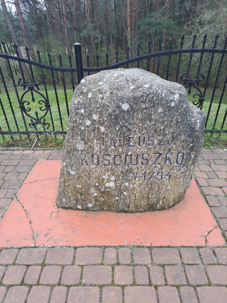 Na samym początku na dwa kamienie pamiątkowe się natkniemy (jeśli kto uważny) a warto, bo to dwa równie ważne, wcześniejsze wydarzenia miały tu miejsce. Można się zastanawiać czemu Kościuszko to miejsce wybrał na obozowanie wojsk swoich, ale trzeba przyznać, że podobnie przemyśliwał jak jego poprzednicy. Miejsce na górze rzeką otoczone, podejście trudne dla piechoty a co dopiero mówić o konnicy. Obóz warowny na szczycie wzgórza zbudowany, twierdzą się stawał, której zdobycie niemalże nie podobnym było.