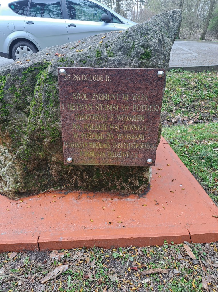 Tak i w tym miejscu, 25/26 września, Anno Domini 1606 miłościwie nam panujący król Zygmunt III Waza, wraz z Hetmanem Stanisławem Potockim obozem się rozłożył dla wytchnienia ludzi i koni, gdy rokoszan (pobuntowanych psiajuchów) Mikołaja Zebrzydowskiego i Janusza Radziwiłła ścigał.